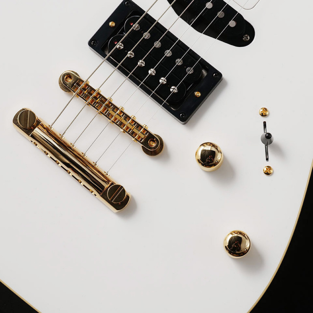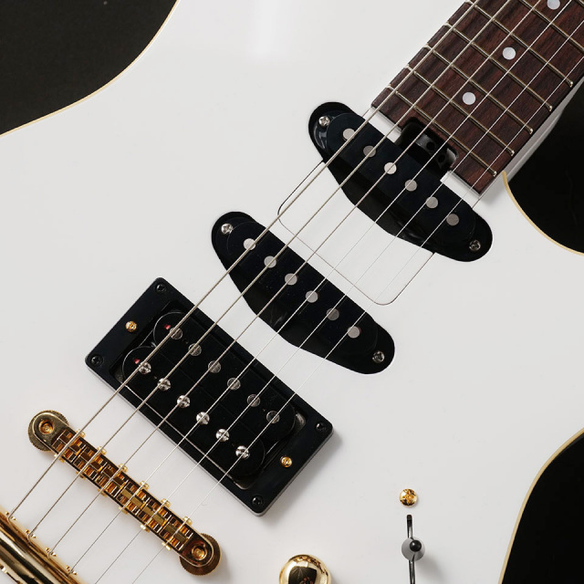 TOMブリッジを採用することにより、セットネックのようにネックの差し角度がつけられており、これまでのストラトタイプと違った弾き心地、テンション感も楽しめます。新開発の裏止めRSジョイントによるサウンドの効果も見逃せません。