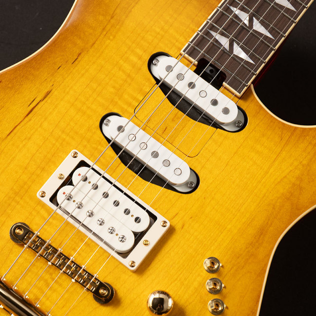 さらに指板に貴重なマダガスカルローズウッドを採用し、木の持つポテンシャルを最大に活かせるモデルとなっております。ハードメイプルには特徴的な杢が現れ、さらに個性を増しています。