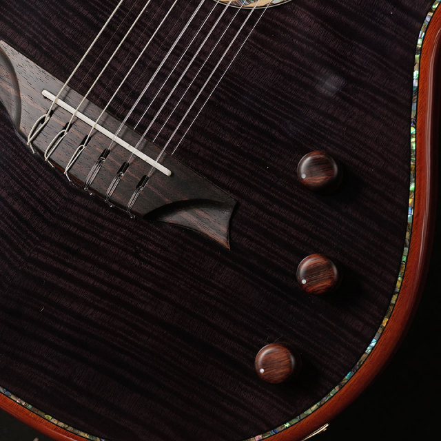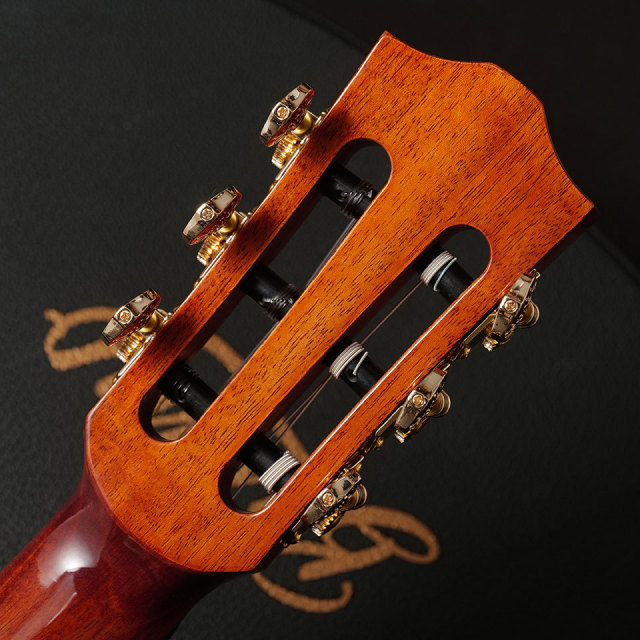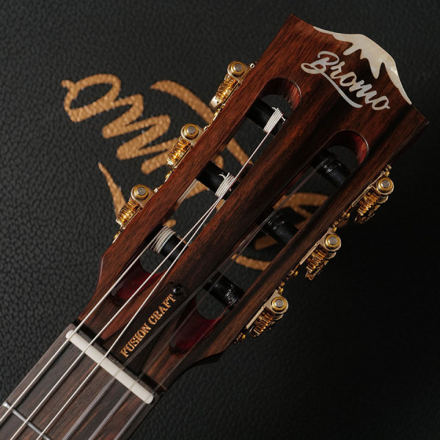 Fusion Craft ブリッジは、上質なアマラ・エボニーを使用しています。その硬度は高く、クリアでバランスの取れた音色を提供すると同時に、優れたサスティーンとチューニングの安定性のための耐湿性を確保しています。ナイロン弦専用に再設計されたこのブリッジは、象徴的なリバース・Bromoマウンテンのデザインはそのままに、弦のテンションを最適化し、レゾナンスを高める独自のドリル・パターンを取り入れています。強度と美しさを併せ持つこのブリッジは、楽器の際立った特徴となっています。