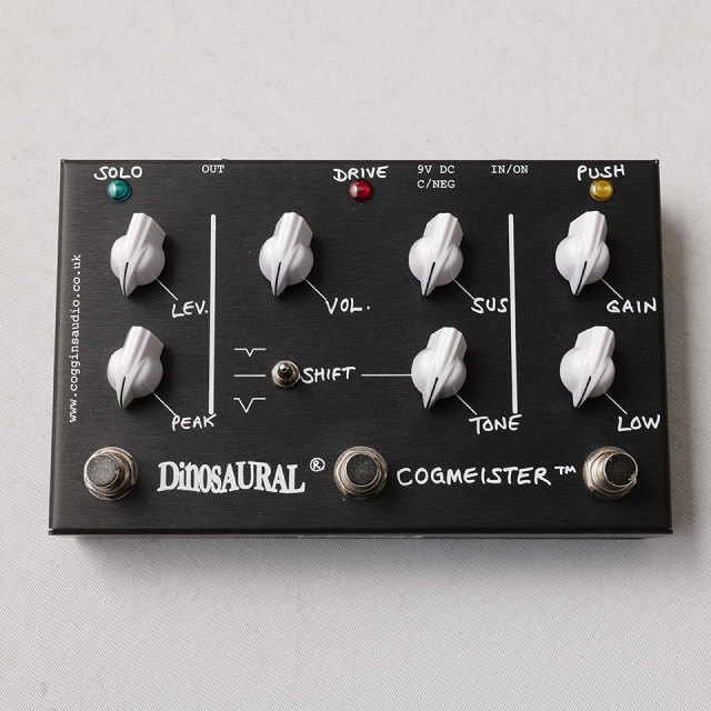 中央の「ドライブ」セクションはオーバードライブ/ブースターで、以前のDinosauralデザインの改良版であり、EQカーブとより大きなトーンオプションが変更されています。
