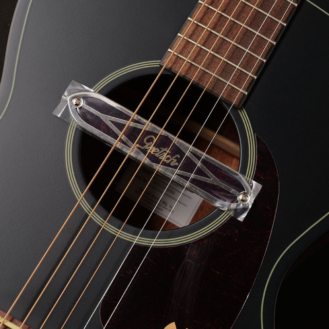 Gretsch Deltoluxeマグネティックサウンドホールピックアップは、ライブパフォーマンスやレコーディングなどの現場で多用途なアコースティックトーンを生み出し、エフェクトペダルとの相性も抜群です。