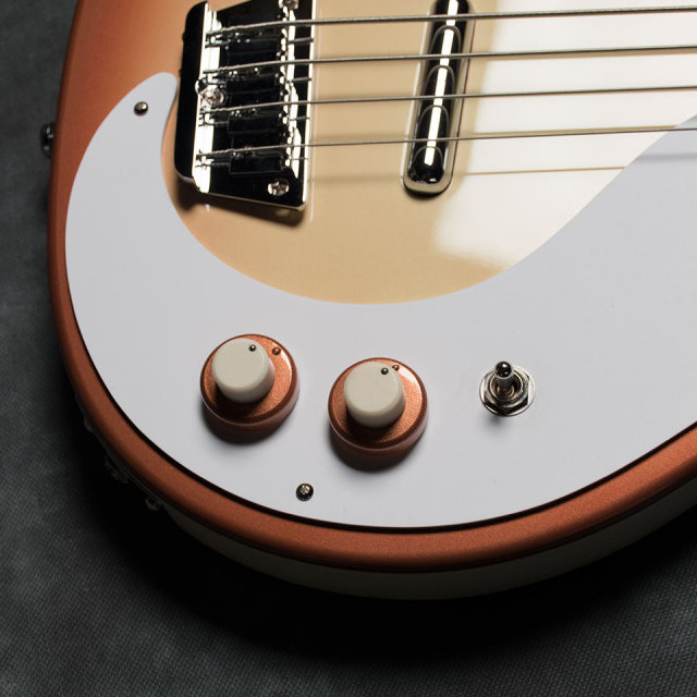 更に、ブリッジはメタルセパレートタイプを採用。細やかな調整も可能となりました。また、ロングスケールでも、メゾナイト製ホロウボディによって軽量で、ショートホーンシェイプによるハイフレットの操作性の高さはそのまま、弦の選択肢が広がり、持ち替え時の違和感も解消しています。