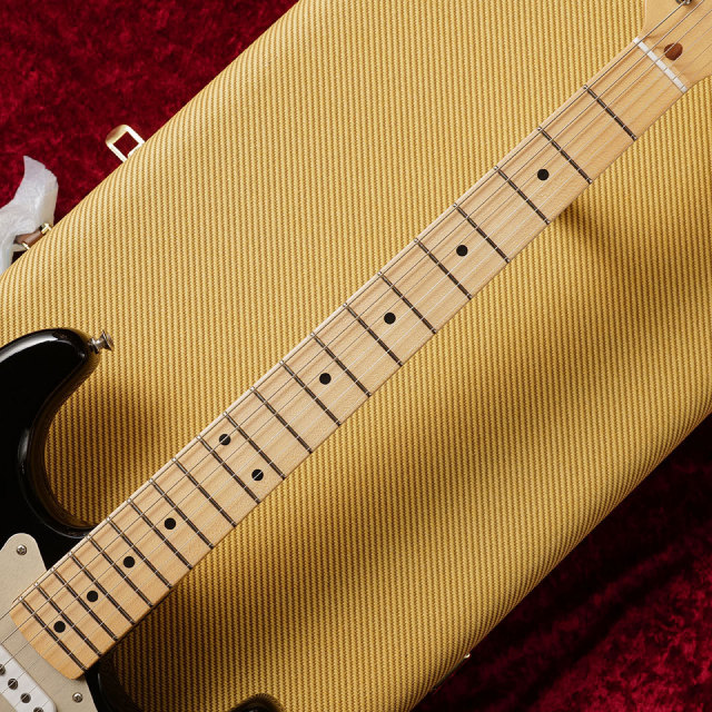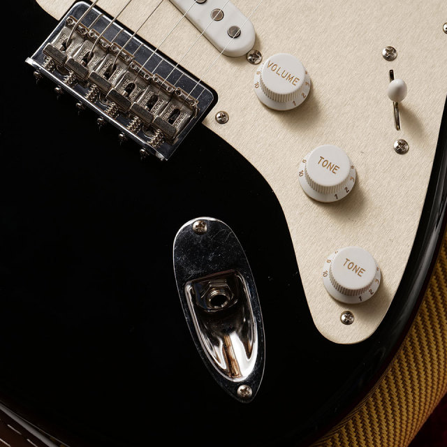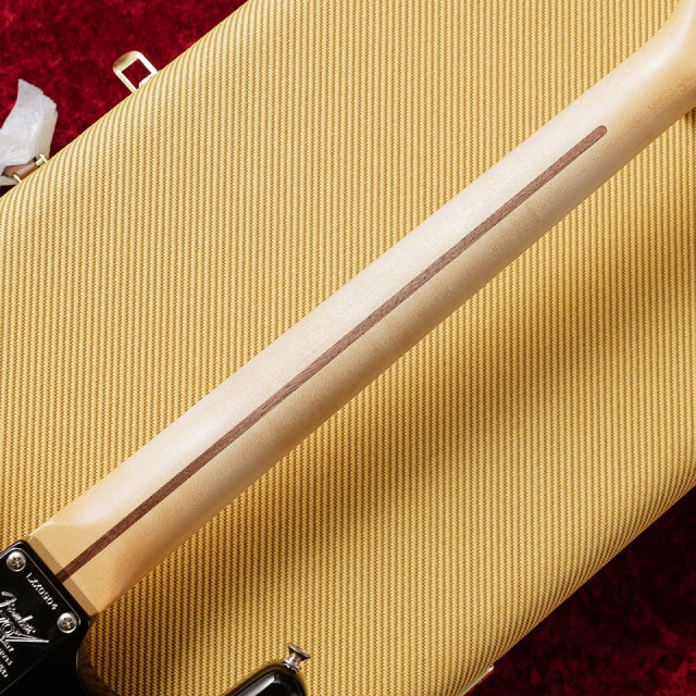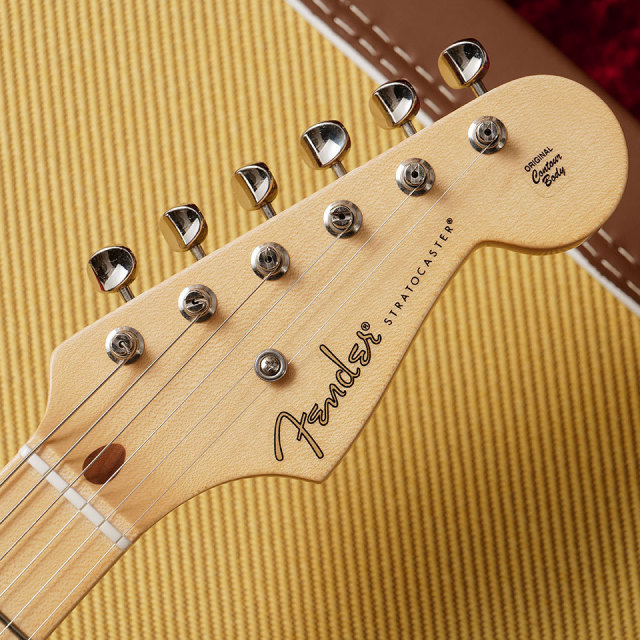 1ピースの柾目メイプルネックは、1954年のStratネックをベースとした特別な70周年記念ソフト「V」プロファイルで作られています。塗装には薄いサテンポリウレタンフィニッシュで滑りの良い加工技術がなされ、ネック裏のセンターは弾き込まれた塗装剥がれがうっすらと再現されています。
