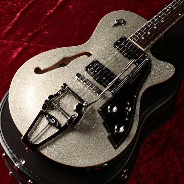 アーチトップボディーがシルバーに輝くゴージャスなルックス。ひとたびステージに上がればバツグンの存在感を発揮することでしょう。まさに”スタープレイヤー”を名乗るにふさわしい一台です。