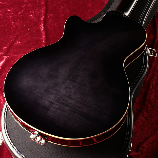 マテリアルはメイプルを基調に、指板にインディアンローズウッド、ボディトップにはスプルースを使用。セミホロウボディを採用しているためアコースティックな鳴りが気持ちよく、アンプを通しても程よいホロー感が得られます。