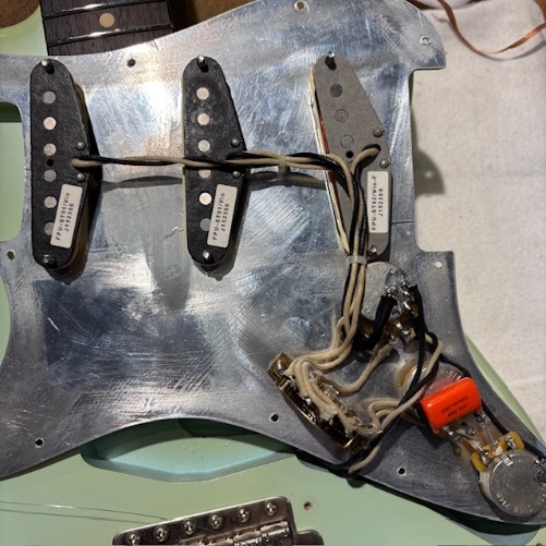 コントロールもシンプルなSTスタイル。ピックアップもVintageタイプですがブリッジPUはややハイパワー。