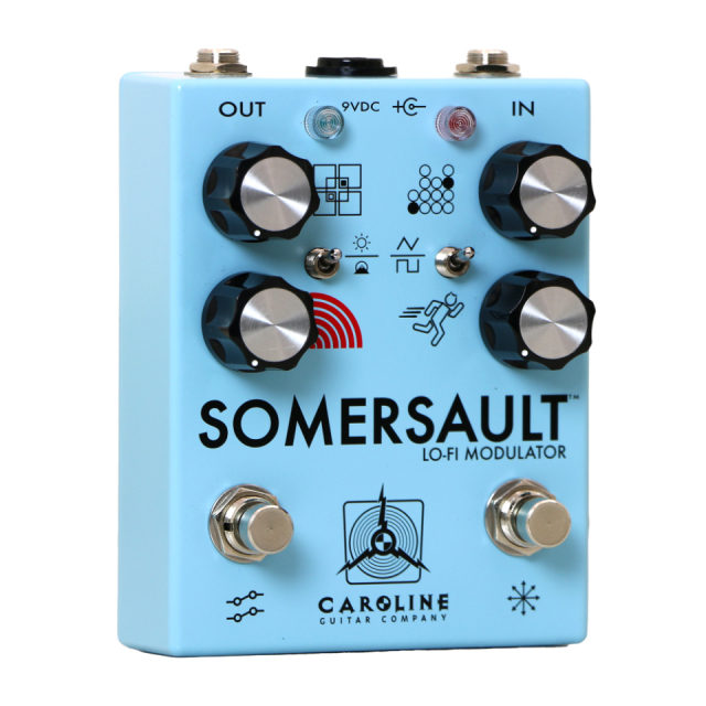 80年代後期から90年代のデジタルコーラス/ビブラートエフェクトが持っていた独特のトーン、リッチかつセンチメンタルな揺らぎ、きらめき突き抜けるような透明感。それらの要素を現代的に解釈し、Caroline Guitar Companyならではの「ひとひねり」が加えられてSOMERSAULTは誕生しました。個性的な世界観のSOMERSAULTを、ぜひ貴方のセンスで冒険してみて下さい。