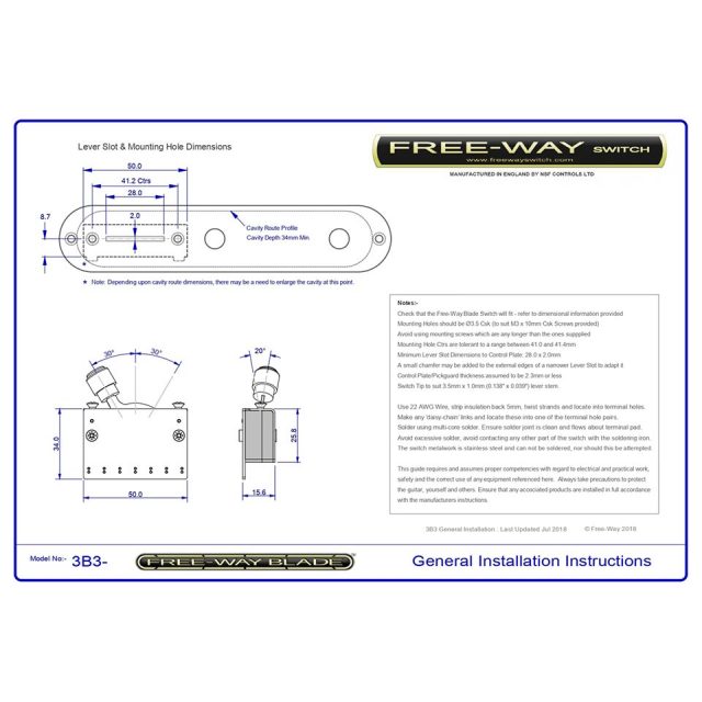B3-01は6ポジションの Free-Way Bladeスイッチ (SS, SSS & HH Guitars) です。