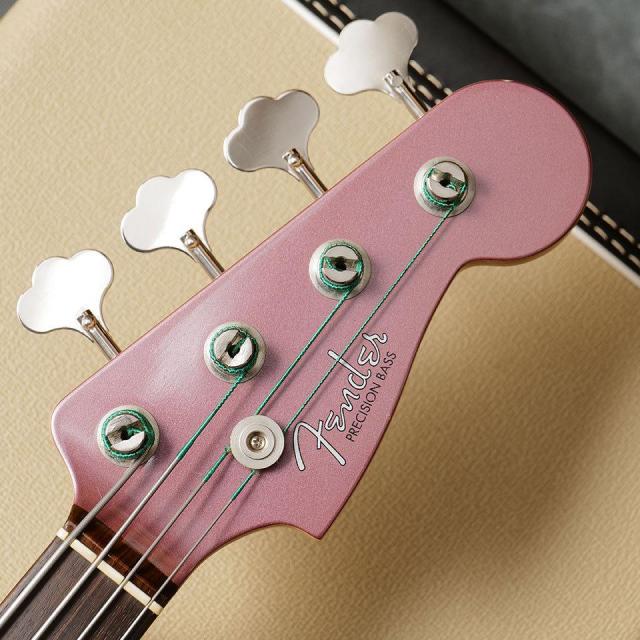 指板も濃いめのローズウッドでカスタム・カラーのバーガンディ・ミストとのコントラストがクールなPrecision Bassです。
