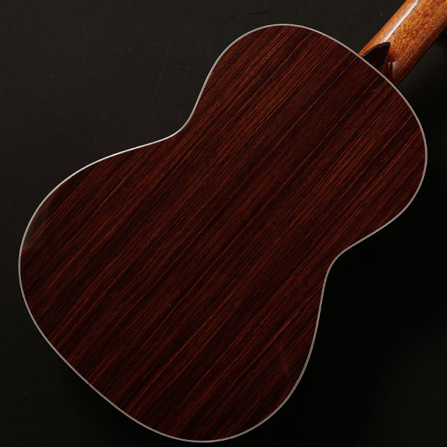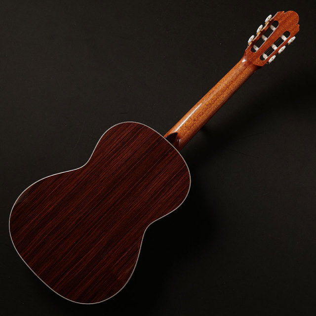 表板には杉材単板を、横・裏板には美しいローズウッドを使用しており、温かい音色で非常にバランスよく鳴ります。これからギターを始められる方にもオススメです。こちらは弦長630mmでボディも小ぶりなので小柄な方にもお勧めです!