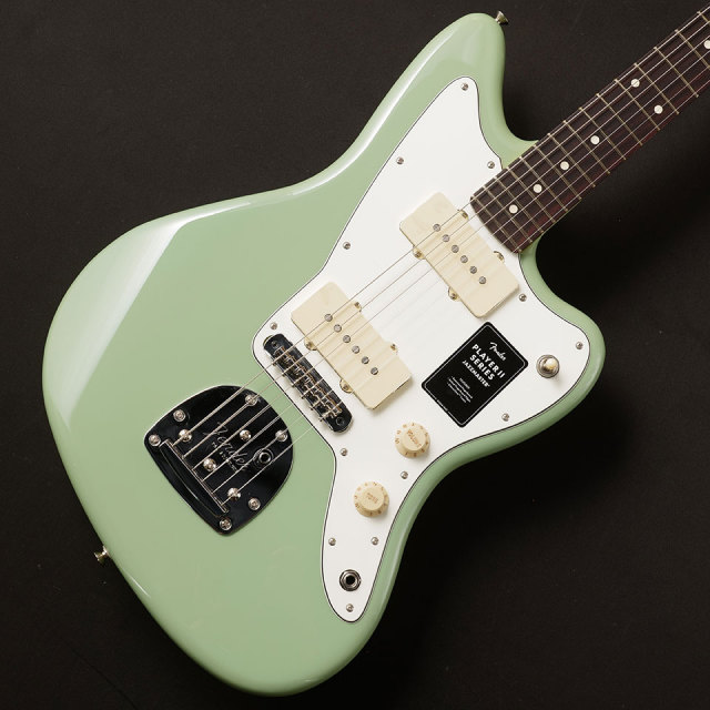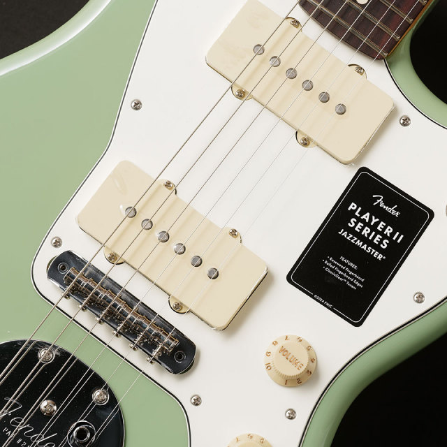Player IIシリーズは、フェンダーの伝統と進化を兼ね備え、フェンダーのDNAを持つアイコニックなサウンドとスタイルを提供します。現代のあらゆるプレイヤーのライブステージやスタジオワークに必要とされる汎用性の高い仕様を持ち、プレイヤーの演奏にインスピレーションを与える現代的なアップデートが施されています。また、本シリーズは、音楽に本気で取り組むプレイヤーも満足する製品ラインナップを取り揃え、これらを手頃な価格で実現しています。Player II Jazzmasterは、時代を超越したフェンダーの魅力を放ちながらも、その中身は現代プレイヤー向けにデザインされています。Modern ”C”シェイプのネックバックにはシルキーなサテンウレタンフィニッシュが施されており、丁寧にロールオフされた指板エッジと22本のミディアムジャンボフレットを採用した9.5インチラジアスのスラブローズウッド指板が、ネック全長にわたり快適なプレイアビリティを提供します。