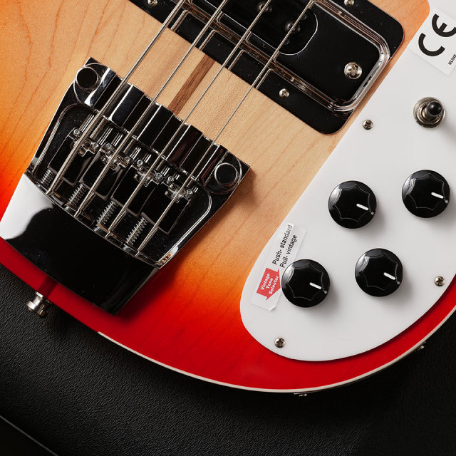4003Sとの違いとして、セルバインディングが施されたボディーとネック、指板のシャークインレイ、そしてリア&フロントP.Uをスレテオでアウトプット可能なRick-O(リック・オー)サウンド等の上位機種ならではのスペックを備えています。