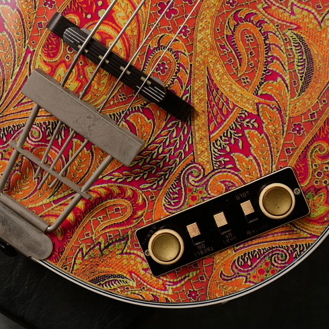 有名な500/2クラブベースにレトロなペイズリー柄トップを採用。ハイグロスブラックのバック&サイド、同色ネックを組み合わせたモデル。