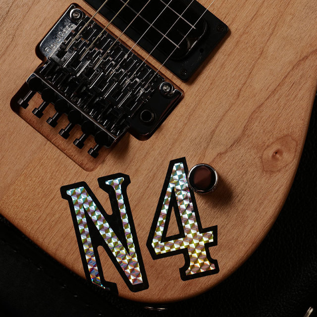 小柄な方にも弾きやすい全体的に小ぶりなボディシェイプ、ヌーノが好んで使用するステファンズエクステンデッド・カッタウェイを採用し、フロイドローズのトレモロユニットを採用。