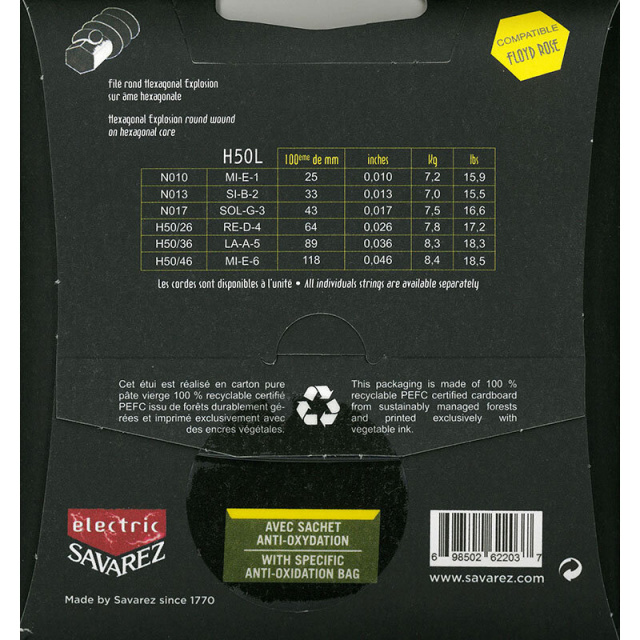 フランスの老舗弦メーカーSAVAREZより6角芯を採用したニッケルワウンドエレキギター弦。