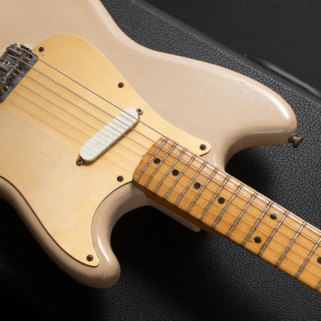 初期型、1958年ネックデイト42mmナット幅のタイプ。ミッドセンチュリーらしいポップなデザインのアノダイズドピックガードとデザートサンドフィニッシュが特徴のタイプです。