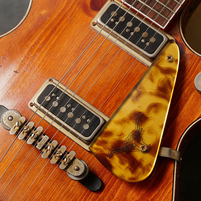 ヘッドに続きボディ&ネックの荒いスパークルのバインディングとボディトップの積層バインディングがペンギンの仕様を保ちながら、その他指板インレイ、トップ材、テイルピース等ラウンドアップの内容となっております。