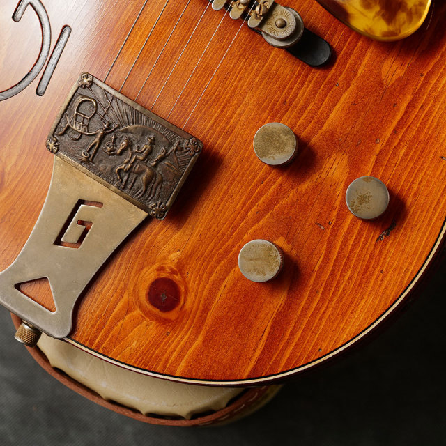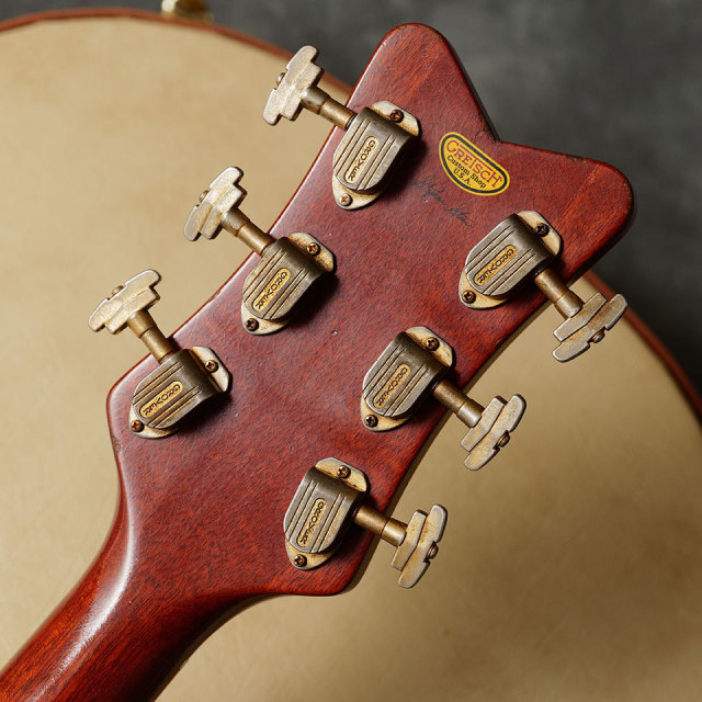 ベルトバックルテールピース、レザートリム、トートイズのピックガード等グレッチらしさ満載のラウンドアップを忠実に再現。