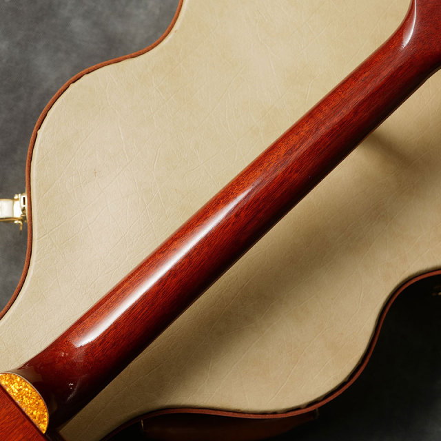 マスタービルダーによる目利きの材選択によるものでしょう。指板も色の濃いものが使われており、厳選されている事が伺えます。生鳴りやアンプを通してのサウンドは、このボディサイズながら箱物の繊細な響きも感じさせ、アーチトップの製作者のプライドを感じさせます。