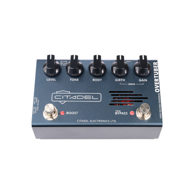 ハイ・ボルテージ・オーバードライブOvertuber は、クラシックなチューブ・ドライバー・ペダルを Citadel Electronics が独自解釈したモデルです。高電圧の “BOOST” モードを有効にすることで、音色の幅が広がります。自動バイアス・トポロジーによってプリアンプ管のパフォーマンスを最適化し、サウンドに一貫した倍音とダイナミクスをもたらします。