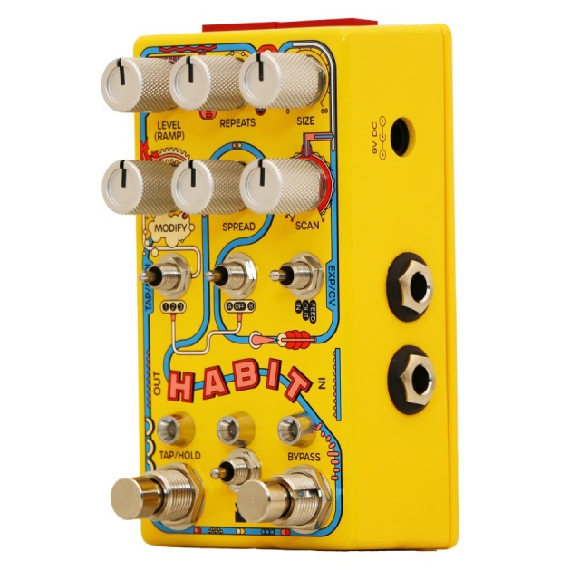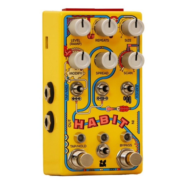 シンプルに言えば、Habitは最大1分のディレイタイムで、マルチタップ、モディファイア、ルーピングを備える実験的なディレイペダルです。