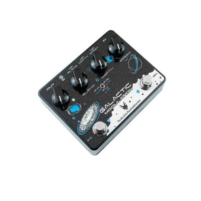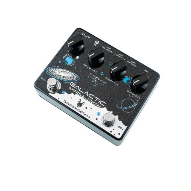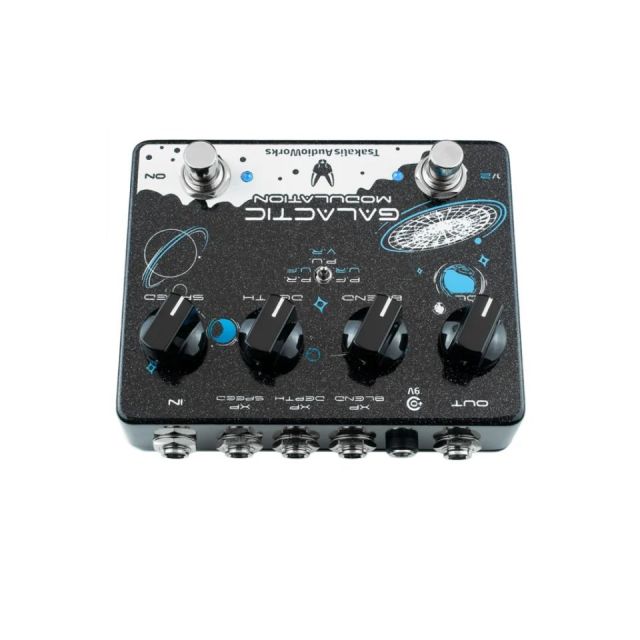 宇宙の音ってどんなだろう?私たちは毎日そう思っています。そこで、私たちはベストを尽くし、宇宙のサウンドを1つのクレイジーな小箱に収め、そこからあなたの音楽に反映させることにしました… 私たちは、基本的なエフェクトを提供するだけでなく、それらを組み合わせてブレンドすることで、あなたのサウンドに新しいテクスチャーをもたらし、探求の可能性を生み出すユニークなモジュレーション・ペダルを作りたかったのです!私たちは5つの基本的なモジュレーション・エフェクト(Phaser、Univibe、Vibrato、Rotary、Flanger)を選び、それらを別々に、またはPairで使用できるようにしました!この実験の結果がGalacticモジュレーションです! トグルスイッチで選択可能な3つのバンクに6組のエフェクトを編成しました。各バンクは、フットスイッチ(左側)で選択可能な2つのPairを備えています。