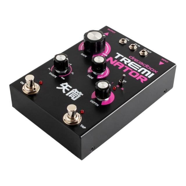 アナログ VCA ベースのトレモロ・ペダルTreminator は、アナログ VCA ベースのトレモロ・ペダルです。複数の波形を持つ LFO と、LFO をフェードイン/アウトさせるための2つのエンベロープ・ジェネレーターにより、表現力豊かなトレモロ・エフェクトを作り出すことができます。