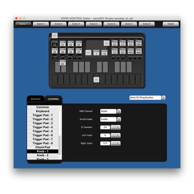 nanoKEY Studioの設定を自由自在にカスタマイズできる「KORG KONTROL Editor」を用意。