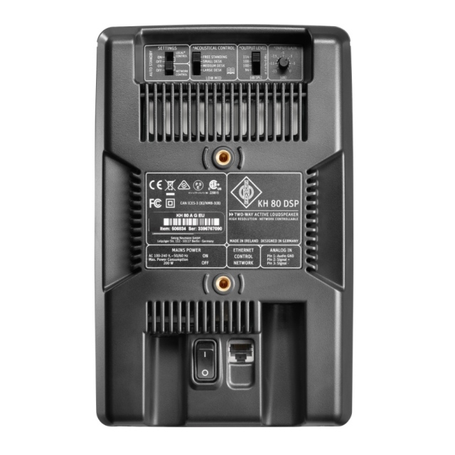 KH 80 DSPは4インチ+1インチ、120W+70Wの高効率アンプ搭載の2ウェイパワードモニタースピーカーです。シリーズ初となるDSPを搭載しており精度と柔軟性の向上に成功し、一貫したサウンドを再現することが可能となります。またKHシリーズではおなじみの高音域を水平軸により拡散するMMDTMウェーブガイド設計により位置に縛られない作業が可能となります。KH 80 DSPは、スタジオニアフィールドモニターだけではなく、小型マルチチャンネルシステムのフロント/リアスピーカーとして使用するように設計されています。また、デスクトップミュージック等のホームレコーディングにも適しています。