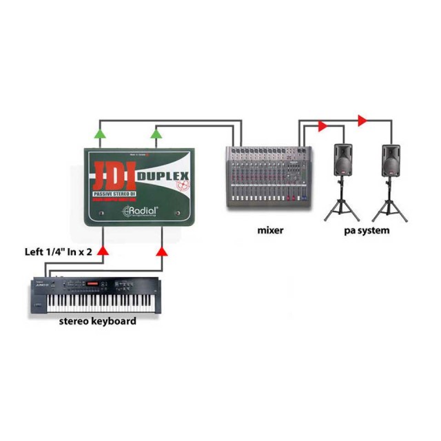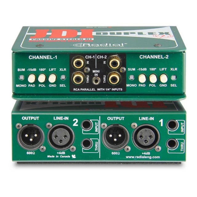 JDI Duplexは機能満載なステレオ・パッシブDIボックスです。XLRや1/4インチ・フォーンに加え、RCAやミニ・フォーン端子を装備しています。スルー端子を入力としても使用できるので、色々な機器を様々な方法で接続できます。楽器|放送機材|AV機器等を高品質でノイズの少ない信号で扱えます。繋ぐだけですぐに使え、過酷な使用に耐える頑丈さがあります。
