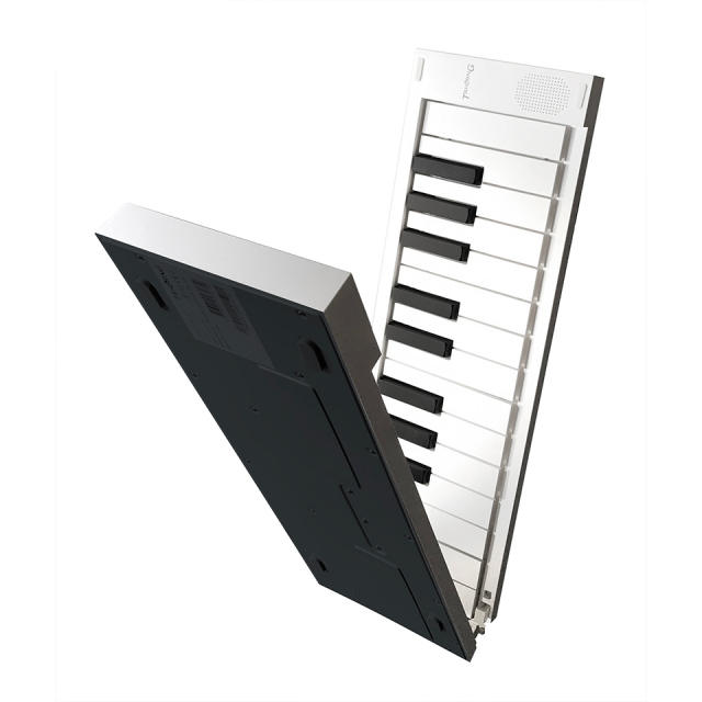 発売以来画期的な本格的な電子ピアノとしてテレビをはじめメディアで話題となっている折りたたみ式電子ピアノ・オリピア88にさらにコンパクトで使いやすい49鍵がラインナップに加わりました。フルサイズの鍵盤、充電式、ステレオスピーカーなどの仕様はそのままに二つ折りでコンパクトに収納可能、重さはわずか1kg。幅60cmのテーブルで本格的なピアノ演奏が楽しめます。