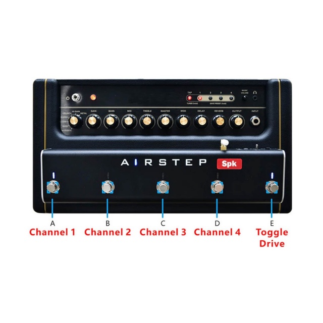 AIRSTEP SPK Editionは“スマートマルチコントローラー”AIRSTEPの機能特化バージョンです。設定をすることなく、すぐにPositive Grid社のポータブルアンプ、Sparkのワイヤレスコントロールを可能にします。チャンネルの切替え、エフェクトのオン/オフ、さらにはSparkアンプをルーパーマシンとして使用することも可能です。このプリセットの切替えとエフェクトのオン/オフは、あらかじめ組み合わせて3つのモードとして内蔵されています。使いやすいモードをお選びいただくだけです。