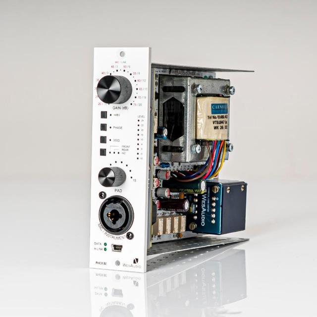_Phoebeのアナログ回路はビンテージNEVE1073のサウンドが再現されています。その雄大でシルキーなサウンドは現代でも多くのレコーディングで利用されている歴史的名機であると言えるでしょう。WesAudio社は本物の英国製Carnhillトランスフォーマーを使ってこのクラスA回路をAPI500フォーマットに再現しました。+28dBuのヘッドルーム、75dBものゲインを持ち、出力段に設けられたIRON PADにより前段でドライブさせた倍音豊かなサウンドをアッテネートする事も可能です。