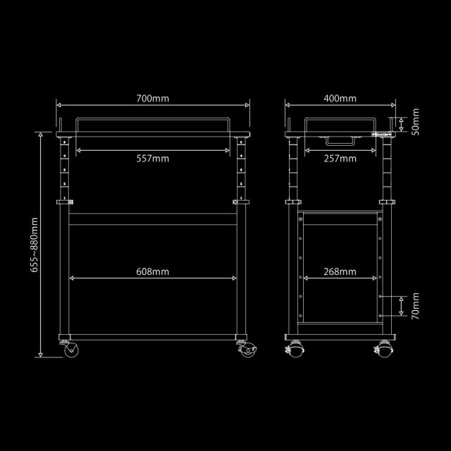 ■カラー:ブラック■寸法:幅400mm × 奥行700mm × 高さ655mm(655~880mm)