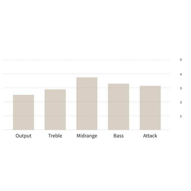 フラットタイプのAlNiCo 5 マグネットを使用、より豊かなリードトーン、ネックピックアップより巻き数を少し増やしたブリッジピックアップより、ミドルポジションでのバランスの良いサウンドになります。