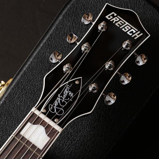 このGH6128T-GHは、1960年代初頭にハリソンが中古で購入した、オリジナルのグレッチDuo Jet(1957年製)に見られる特徴的な装飾と仕様を再現しています。