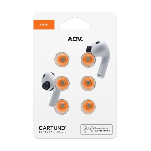 EARTUNEはADV.が展開するオーディオ用イヤーピースや音響フィルターなどの専門ブランドです。FIDELITY UF-A3はAirPods Pro3専用に設計された低反発フォームイヤーピースで、形状記憶特性により、耳に快適にフィットし、優れた快適性と遮音性が特徴です。