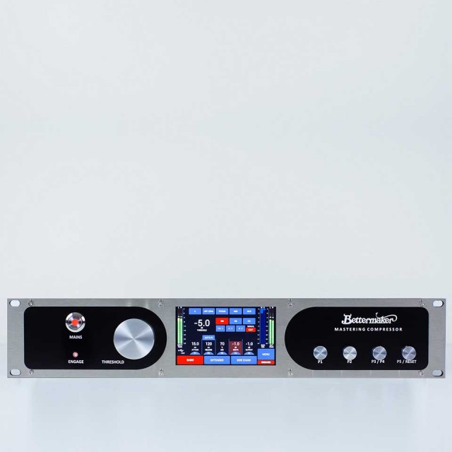 Bettermaker VCAコンプレッサーのすべての機能を有しているのが、Mastering Compressorです。コンプレッサーが行えるおよそすべての音楽表現の機能をひとつの箱に収めながら、デジタル制御とリコールが行える新世代のアナログ・VCAマスタリング・コンプレッサーです。5インチタッチスクリーンと5つのエンコーダーを使った本体でのオペレーションと、プラグインコントローラーからの両方ですべての操作を行うことができます。