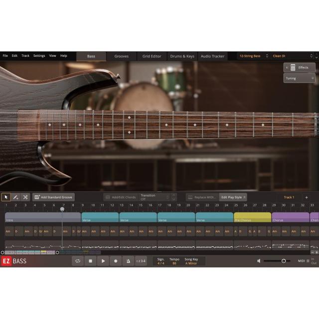 ベースライブラリーに加え、EZbassで使用できるベースMIDIフレーズやプリセットも多数収録しています。