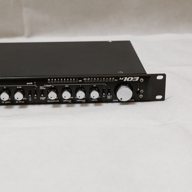 繊細なアコースティック、声の収録に最適な、利便性溢れるチャンネル・ストリップ。シンプルながら入力ステージで必要な要素をすべて内包したm103は、ボーカルやアコースティック楽器はもちろんのこと、そのS/Nの良さ、息使いまで表現する繊細さから、アナウンス、ナレーション用としても最適な一台です。