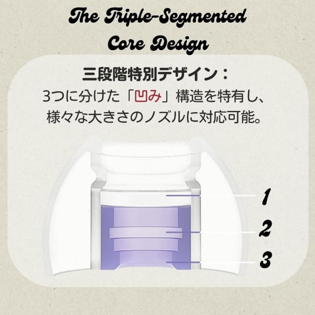 外側には柔らかく肌に優しいシリコン素材を使用し、長時間でも快適な装着感を提供。内側には耐久性のある素材を組み合わせ、イヤホンとのしっかりした固定力を確保しています。